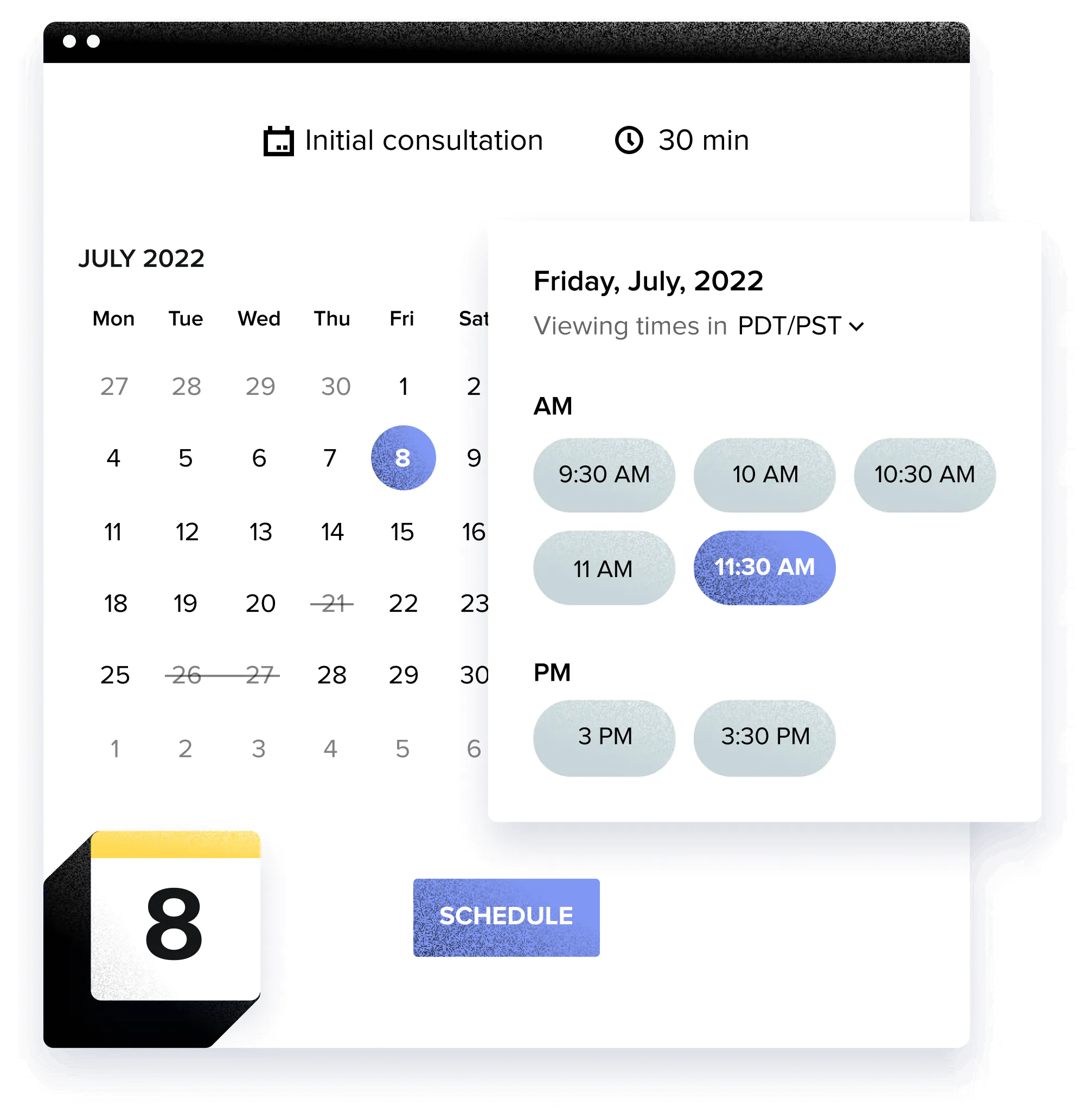 Manage all your events, meetings, follow-ups, and appointments in one place. View by month, week, day, or agenda. Color-coded events, invoice and expense tracking on calendar, and integration with Zoom and Google Meet.