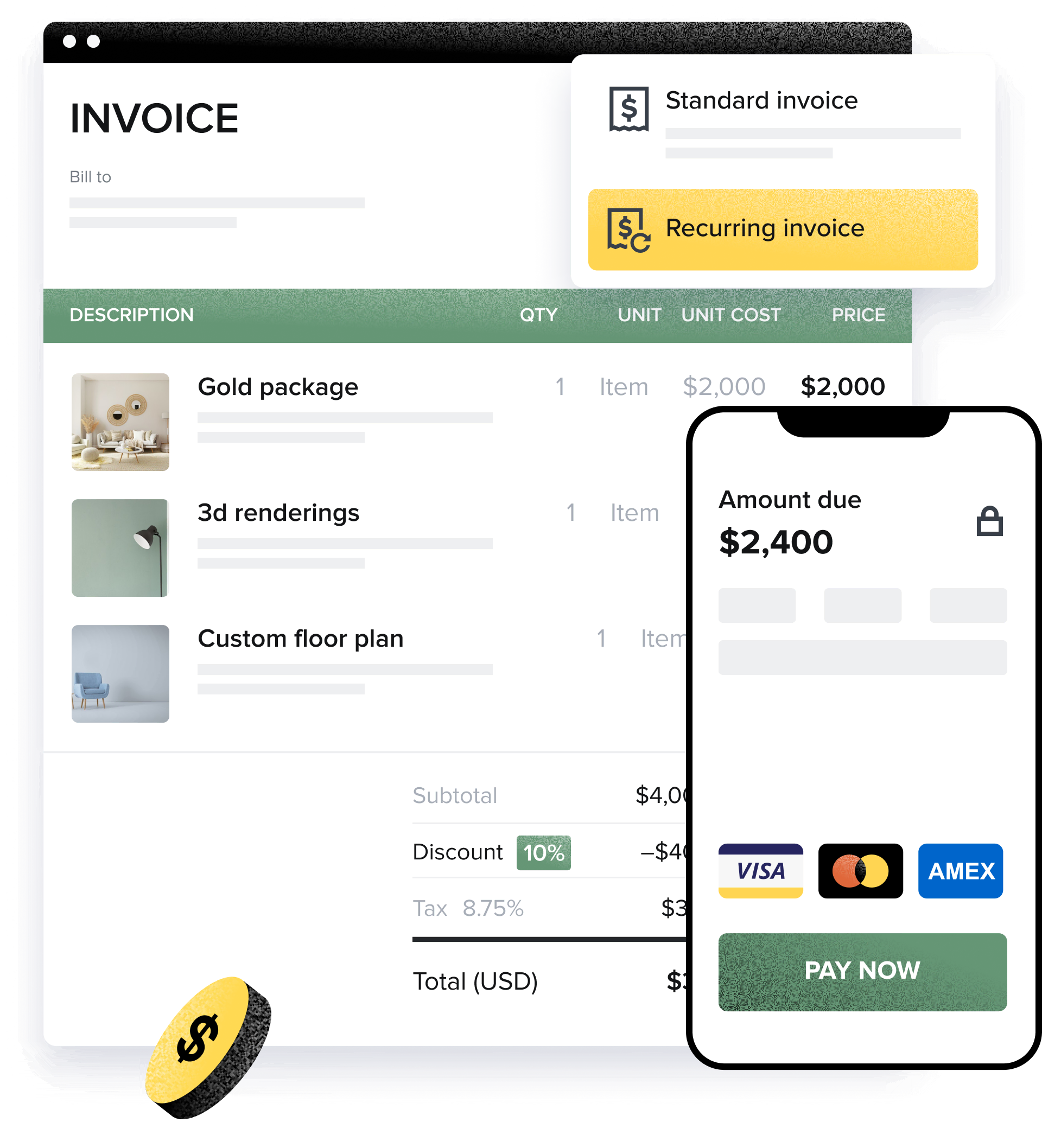 GET STARTEDComplete invoice lifecycle from creation to payment tracking. Generate professional invoices, track payment status in real-time, multi-currency support, and export to PDF and email.